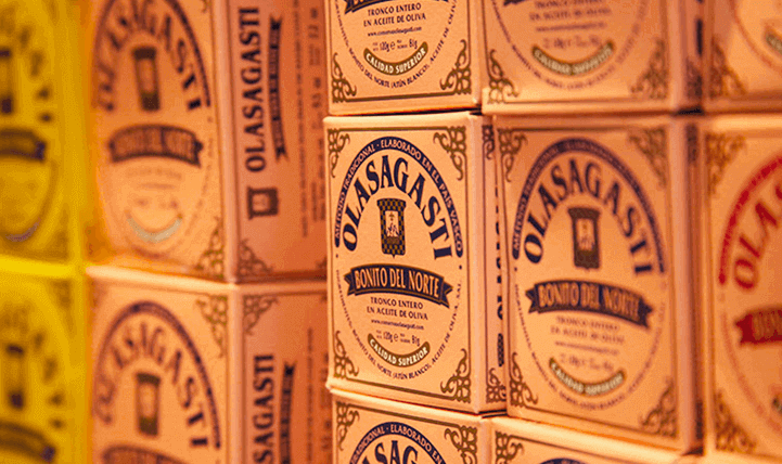 Située près du port de pêche d’Ondarroa dans le pays Basque espagnol, la conserverie familiale Olasagasti ne travaille que des produits de premier choix, essentiellement pêchés dans le Golfe de Gascogne. Le fameux « Grand Anchois de Cantabrie », le thon sous toutes ses formes, sans oublier la merveilleuse ventrèche de thon germon y sont magistralement représentés.