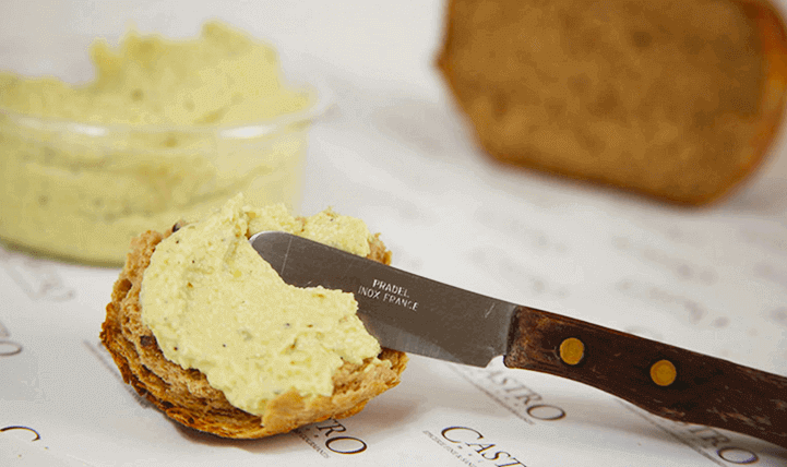 Nous élaborons nos tapenades à partir d’olives vertes du Maroc très peu salées. Anchois et câpres entrent bien sûr dans la composition et le tout est agrémenté de la touche « Castro » pour une saveur gourmande et unique.