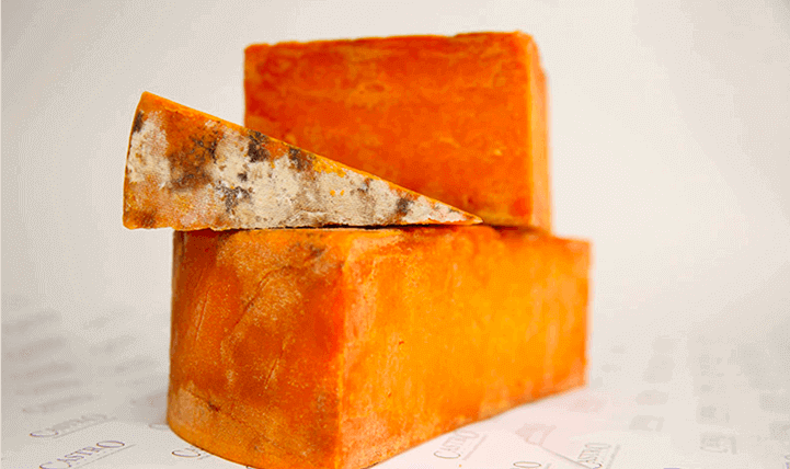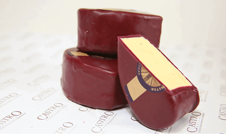 Enveloppé dans sa fameuse cire bordeaux, le Cheddar bio à la texture beurrée et aux parfums fruités est une pure merveille.