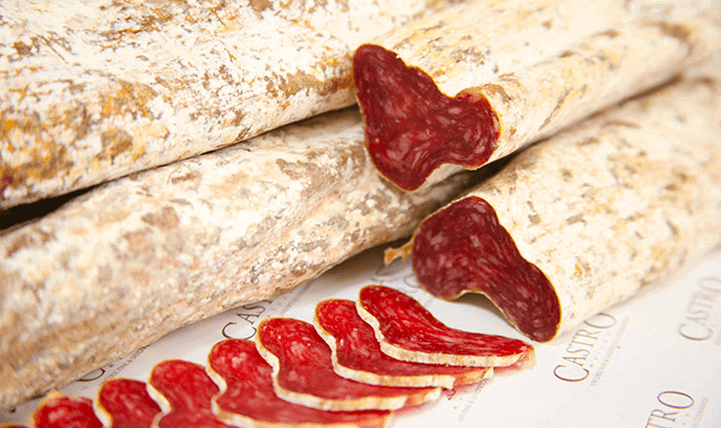 Ce délicat « Salamu » provient de La Castaniccia, au nord-est de la Corse, fabriqué a partir d’épaule et de poitrine de porc, il est séché et légèrement fumé.