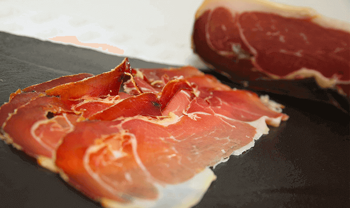 Ce jambon cru est produit à Olot, dans les Pyrénées espagnoles, son affinage naturel de douze à quatorze mois lui apporte saveur fruitée et douceur.